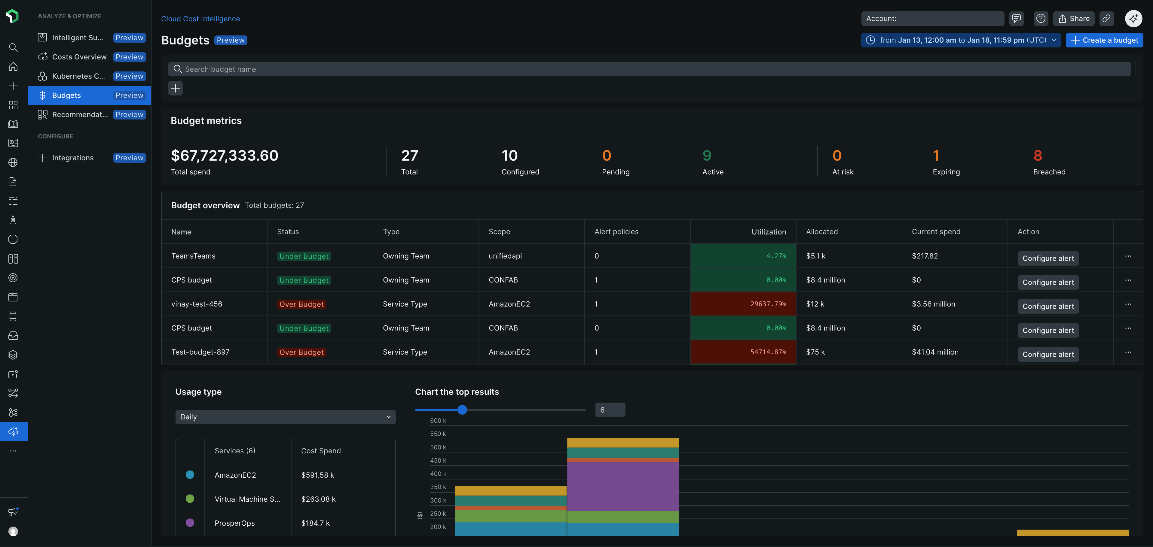 - On the Budgets page, click Create a budget.