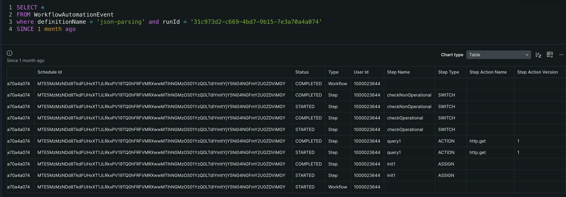 where definitionName = 'json-parsing' and runId = '31c973d2-c669-4bd7-9b15-7e3a70a4a074'
