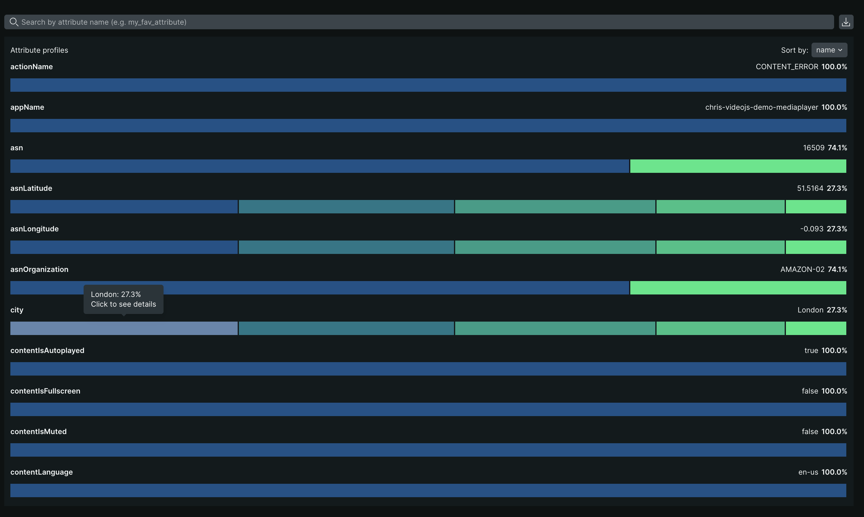 Error profiles assist in answering questions such as: which users appeared most frequently across all error events within the chosen time frame? Or which session occurred most often across all error events during the selected period?