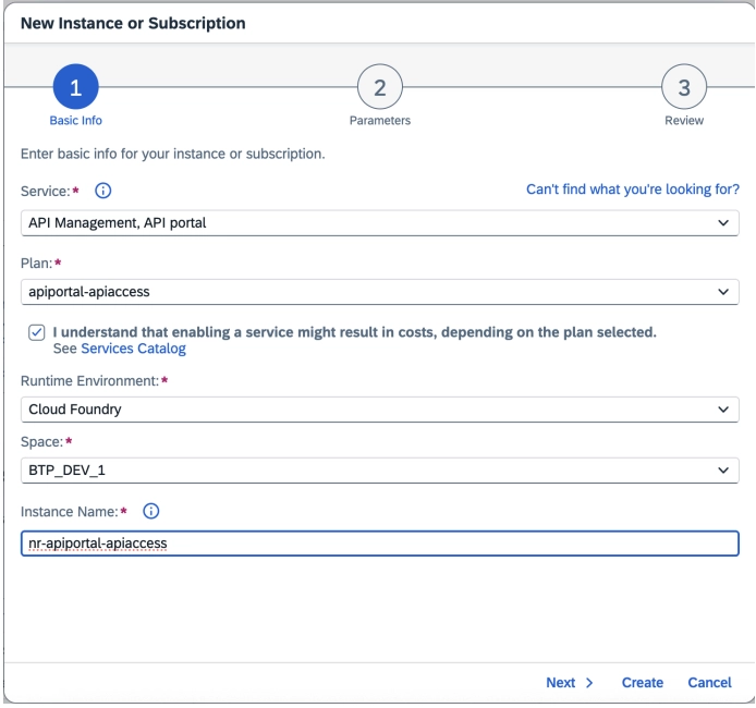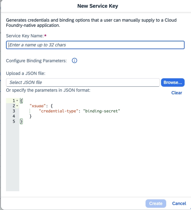 ...) next to your instance, then click Create Service Key.Enter a Service Key Name and Credential Type: